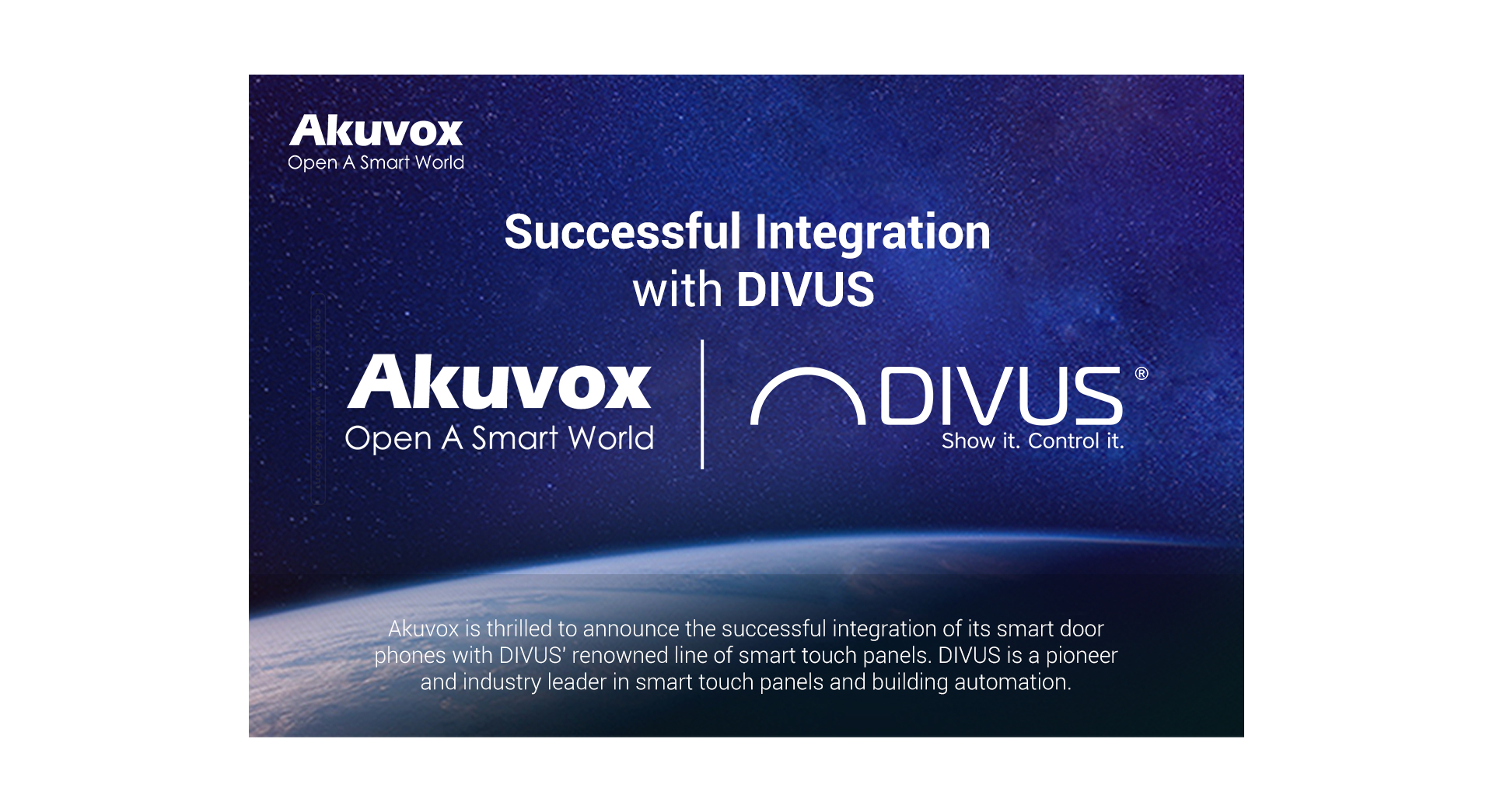 Xiamen, China, Sept. 22, 2023 - Akuvox, the global leading provider of smart intercom and smart home products and solutions, is thrilled to announce the successful integration of its smart door phones with DIVUS' renowned line of smart touch panels. DIVUS is a pioneer and industry leader in smart touch panels and building automation.