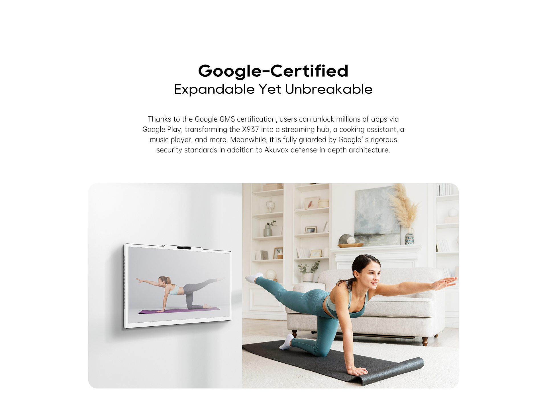 The X937 is a 15.6-inch indoor monitor running Android 14 OS. As the first smart indoor monitor of its kind, it integrates surveillance via HDMI-connected NVRs, smart intercom, and an LLM-powered voice assistant into a sleek, expansive interface.