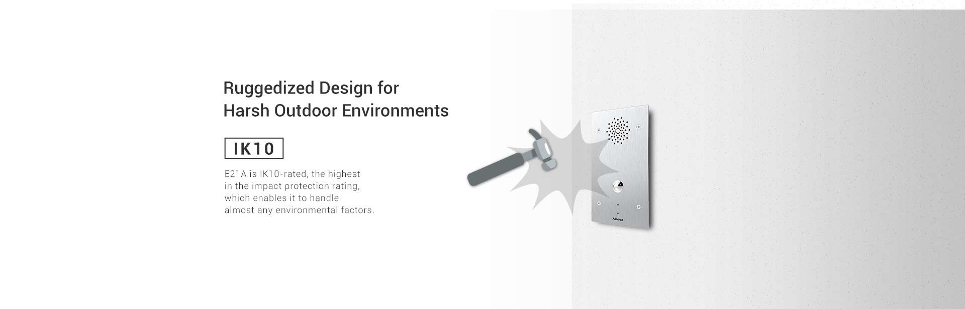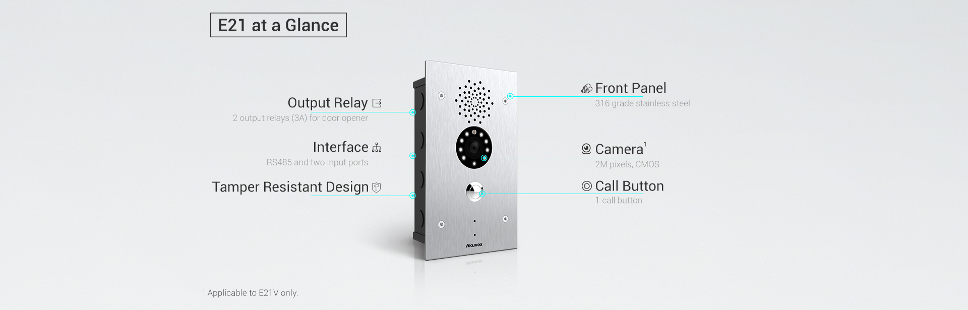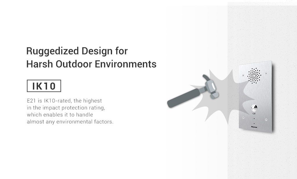 Akuvox E21 is a SIP emergency intercom with or without a camera. It is typically used in public space like parking lots and subways.