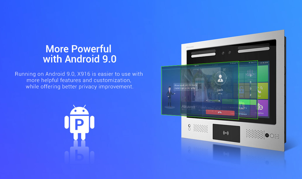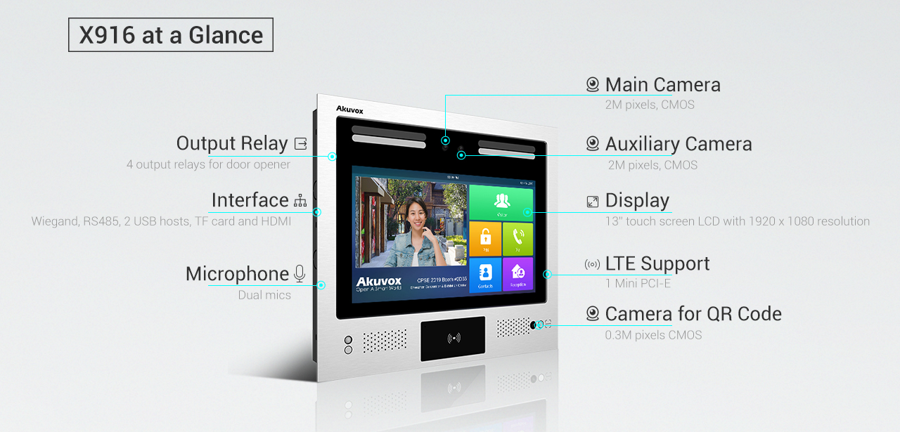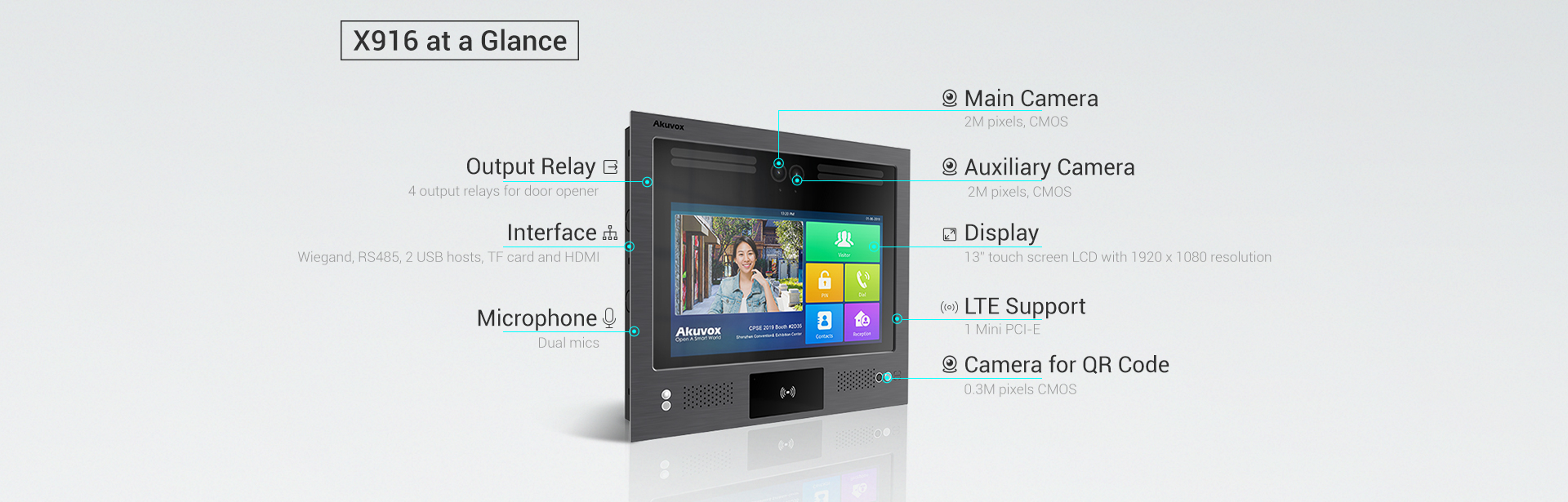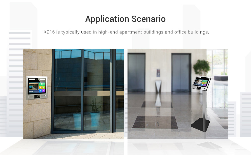 Akuvox X916 SIP video doorphone is one of the most powerful models in the industry, which incorporates the latest technologies including starlight camera, HDR, Android 9.0, and facial recognition. It is typically used in high-end apartment buildings and office buildings.