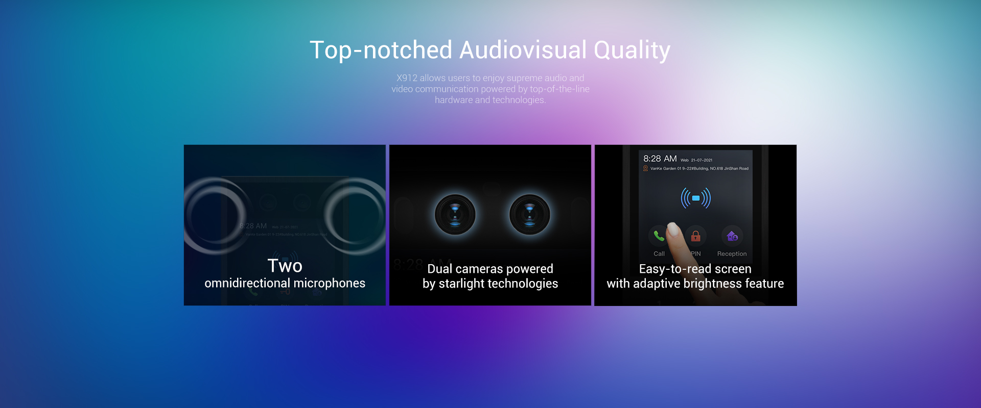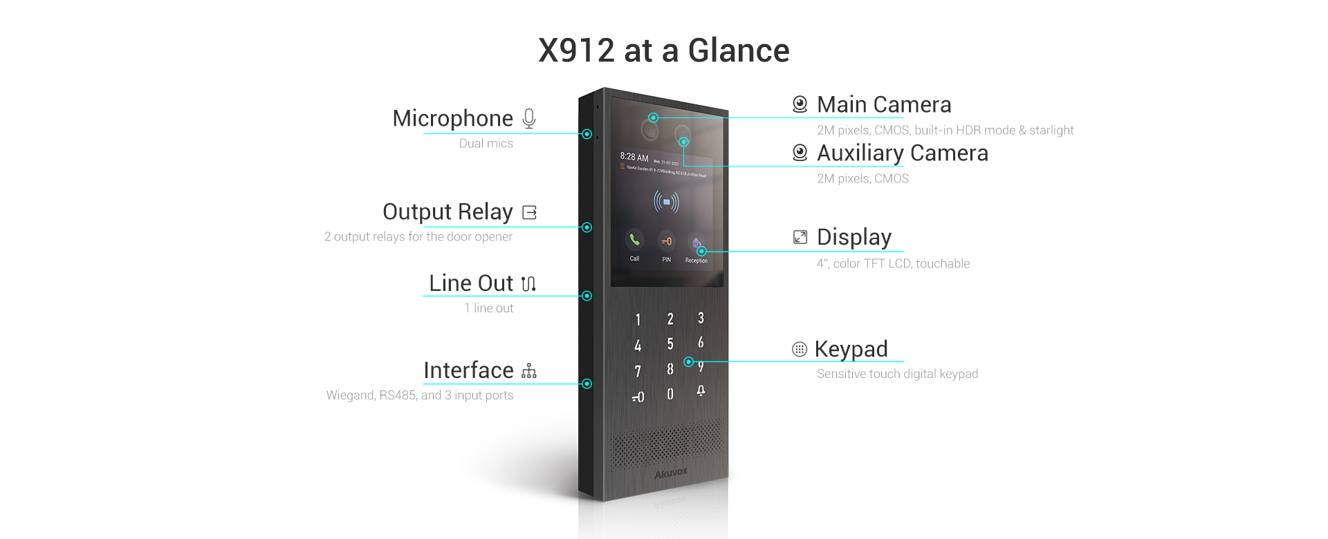 Offering top-of-the-line features, Akuvox X912 is targeted at high-end residential and commercial projects. With a compact size, it is perfect for buildings with limited installation space.