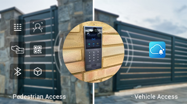 The Akuvox X912 Smart Door Phone features two output relays, allowing for control of two door openers — one for pedestrians and one for vehicles. This configuration enables dual door control through a single door phone device installed on the gate wall. The bungalow gate, with its two passages, utilizes the X912's capabilities differently for pedestrians and vehicles. The X912 offers a range of convenient door-opening methods to suit residents' preferences. Options include BLE proximity, face recognition, QR codes, app access, and card reading with PIN. For vehicle access, the cloud-based remote door opening via the SmartPlus App is particularly convenient. Residents can fully enjoy the door phone functions through the SmartPlus App, including answering video calls and viewing clear videos of visitors, thanks to the dual Starlight 2M pixel cameras on the X912.